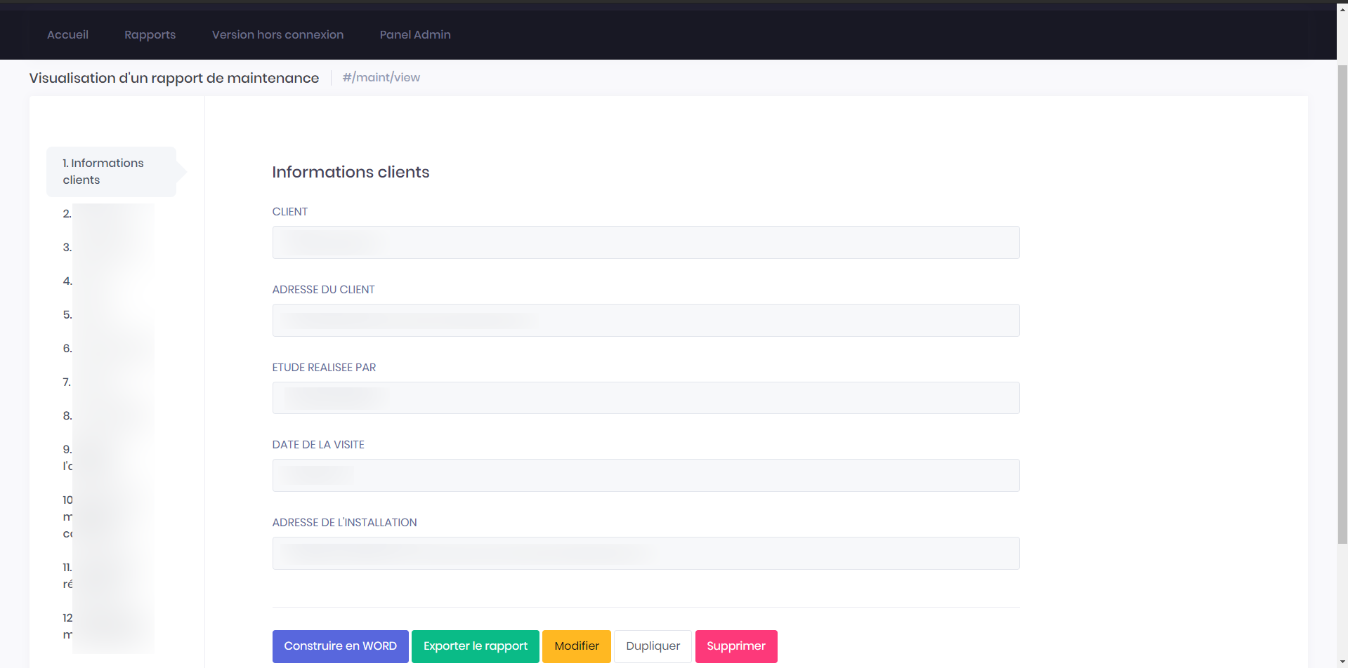 - Exportation d'un rapport existant en format WORD (remplissage automatique d'un template de l'entreprise),