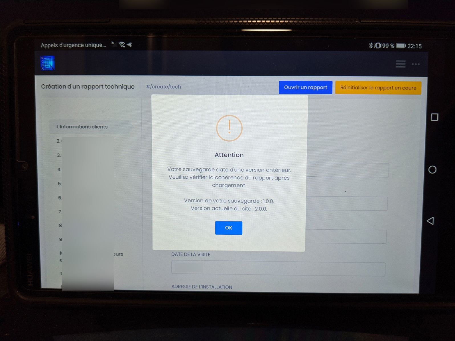 - Version hors connexion pour utilisation sur tablette tactile sans accès internet (entièrement réalisé en Javascript avec génération d'une sauvegarde dans la tablette avec un format propriétaire chiffré),