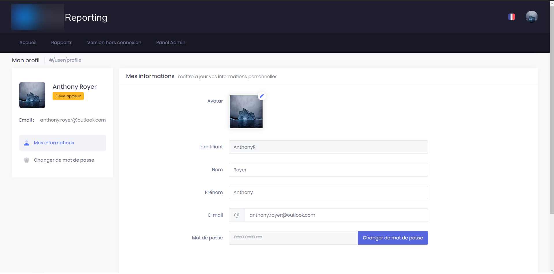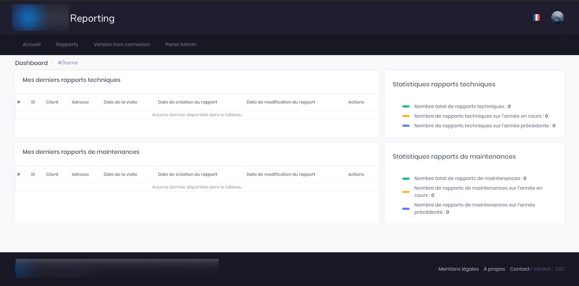 - Dashboard avec visualisation des derniers rapports + des statistiques annuelles,